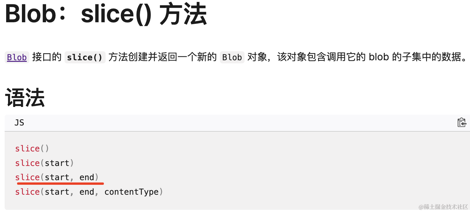浏览器里 Blob 有 slice 方法,可以截取某个范围的数据,而 File 就是一种 Blob: