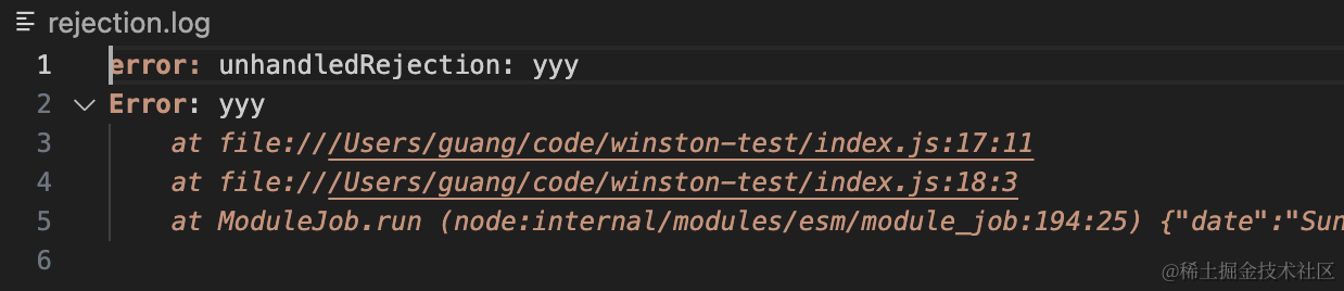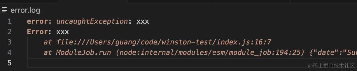 此外,winston 还支持指定如何处理未捕获的错误的日志: