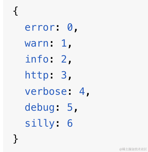 再就是日志级别,winston 有 6 种级别的日志: