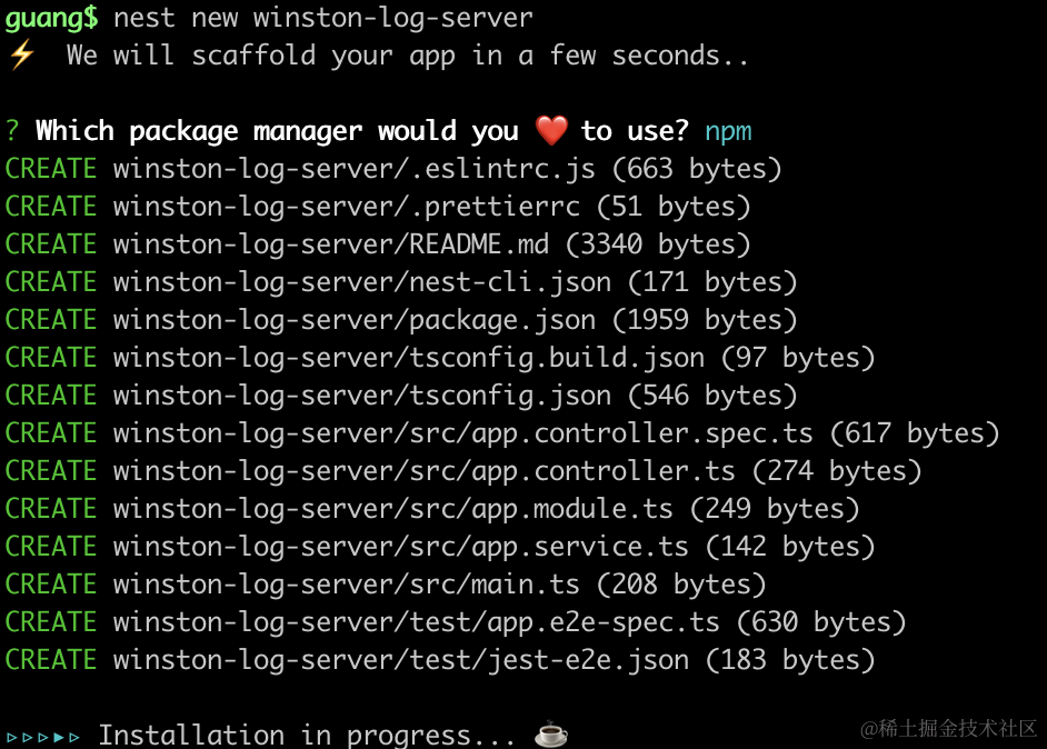 先创建个 nest 服务: