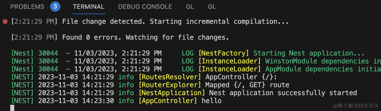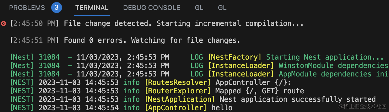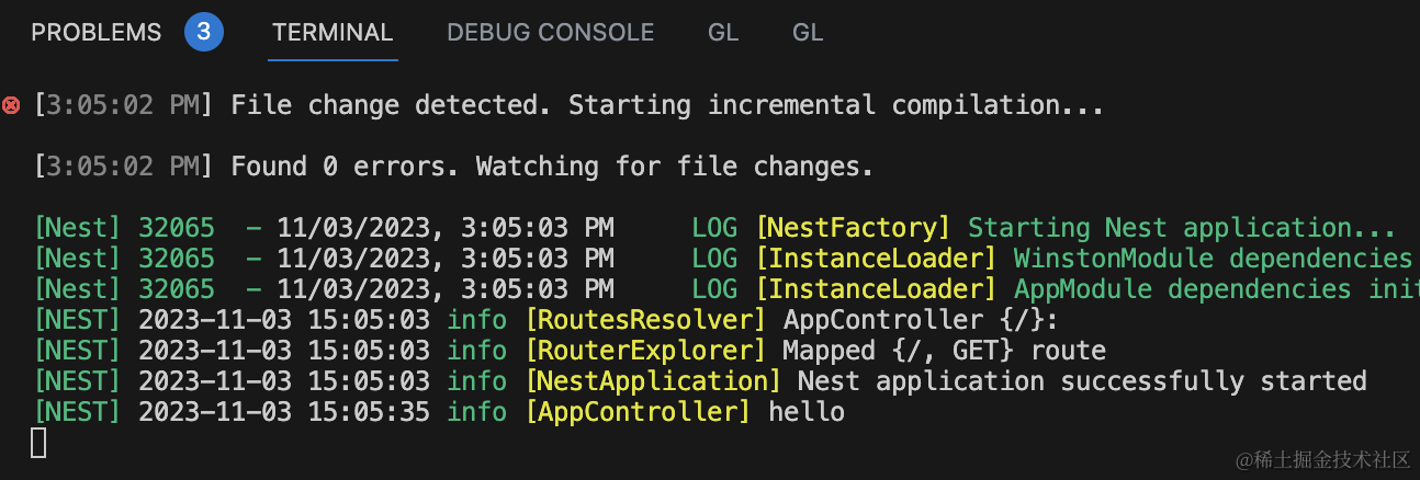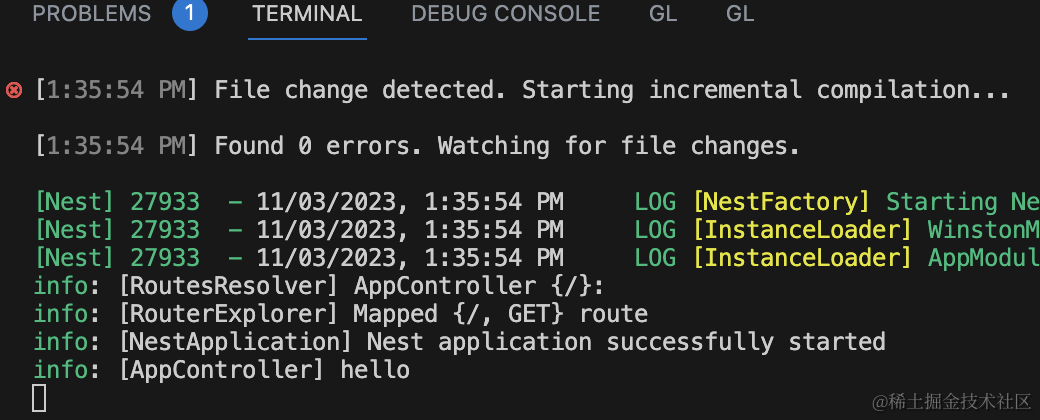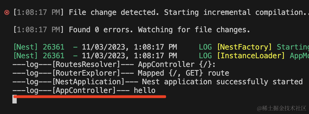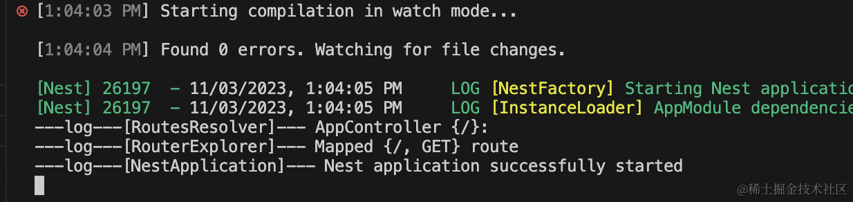 npm run start:dev现在的 logger 就换成我们自己的了。
