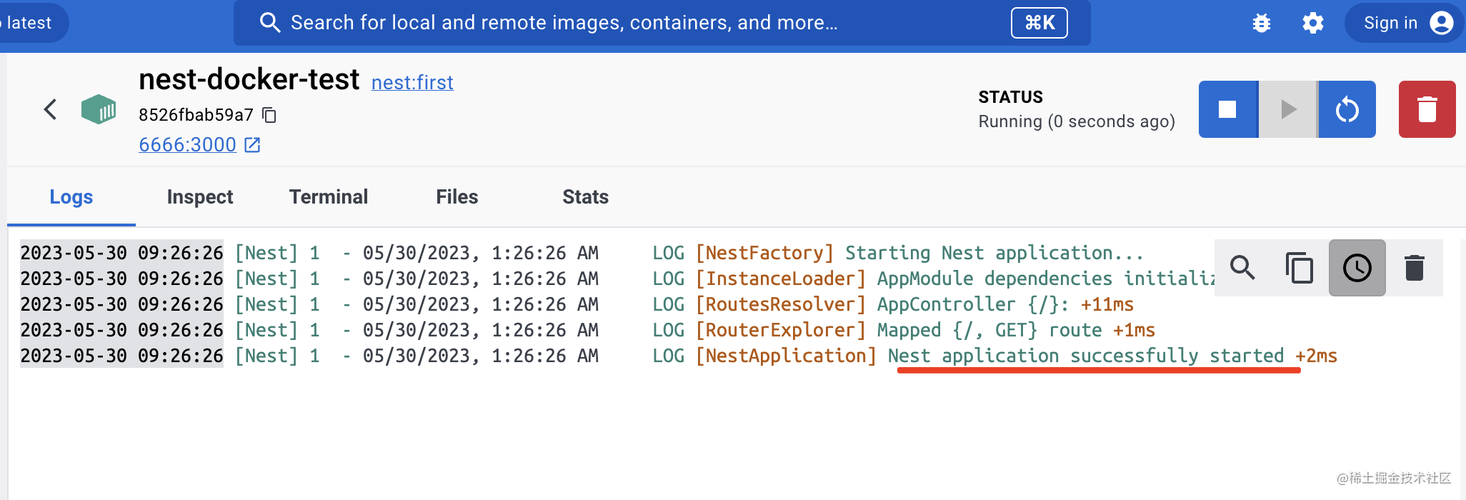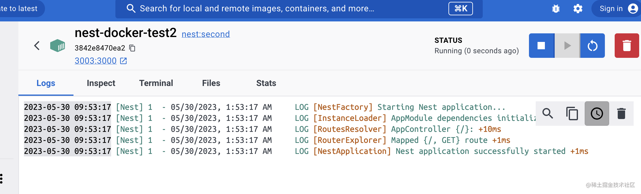 docker build -t nest:second .把之前的容器停掉,把这个跑起来: