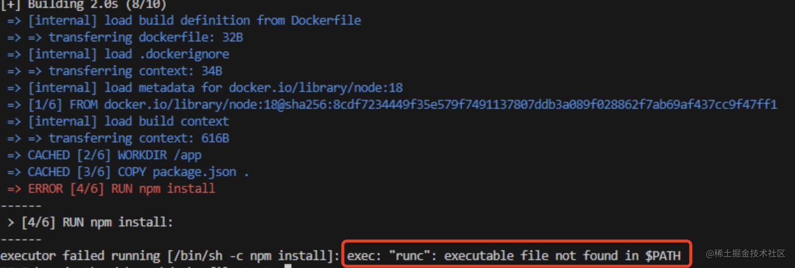 我们会先把源码目录发送到 docker daemon 中执行 npm run build 来构建产物,之后再 node ./dist/main.js 把服务跑起来。
