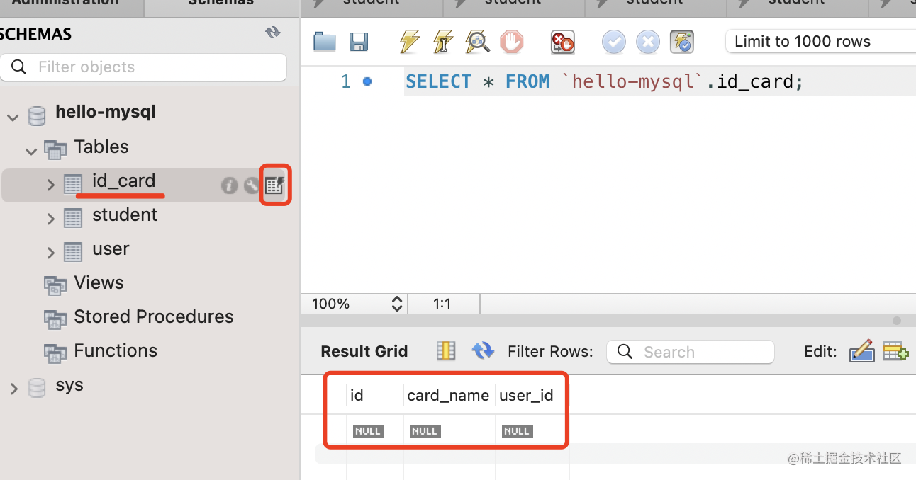 );然后再建个 id_card 表: