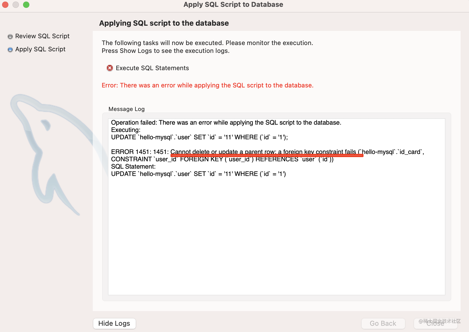 这时候会提示你更新失败,因为有外键的约束。