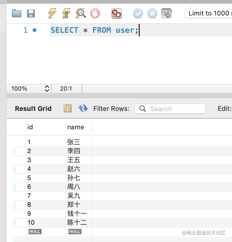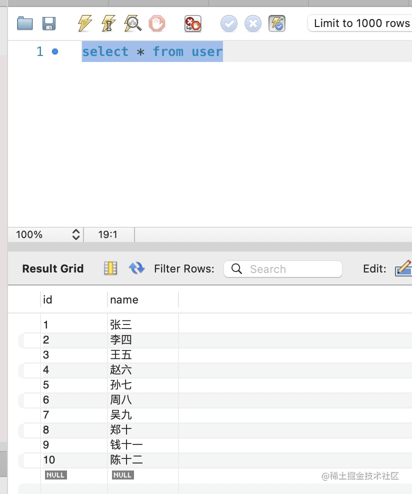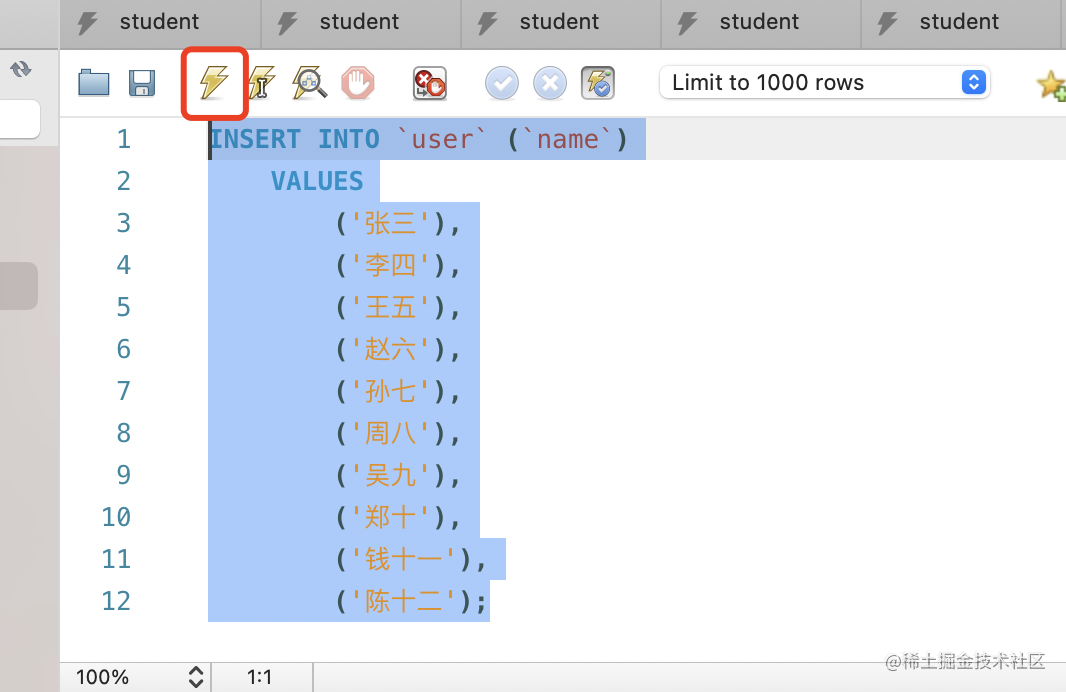 点击左上角按钮,新建一条 sql: