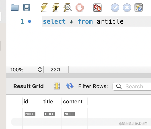 delete from article where id = 1;然后再执行下面的查询: