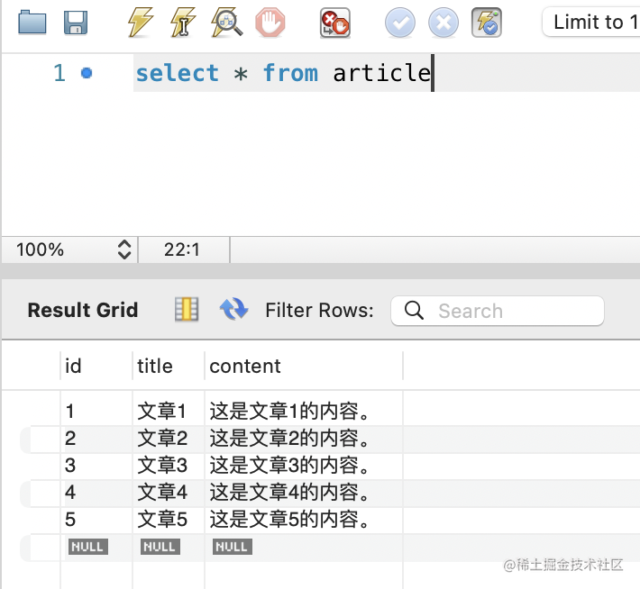 ('文章5', '这是文章5的内容。');再查询下: