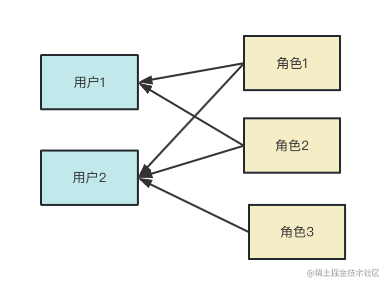 一个用户可以有多个角色,一个角色可能多个用户都有。