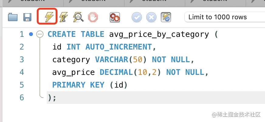 SELECT category, AVG(price) FROM product GROUP BY category;点击执行: