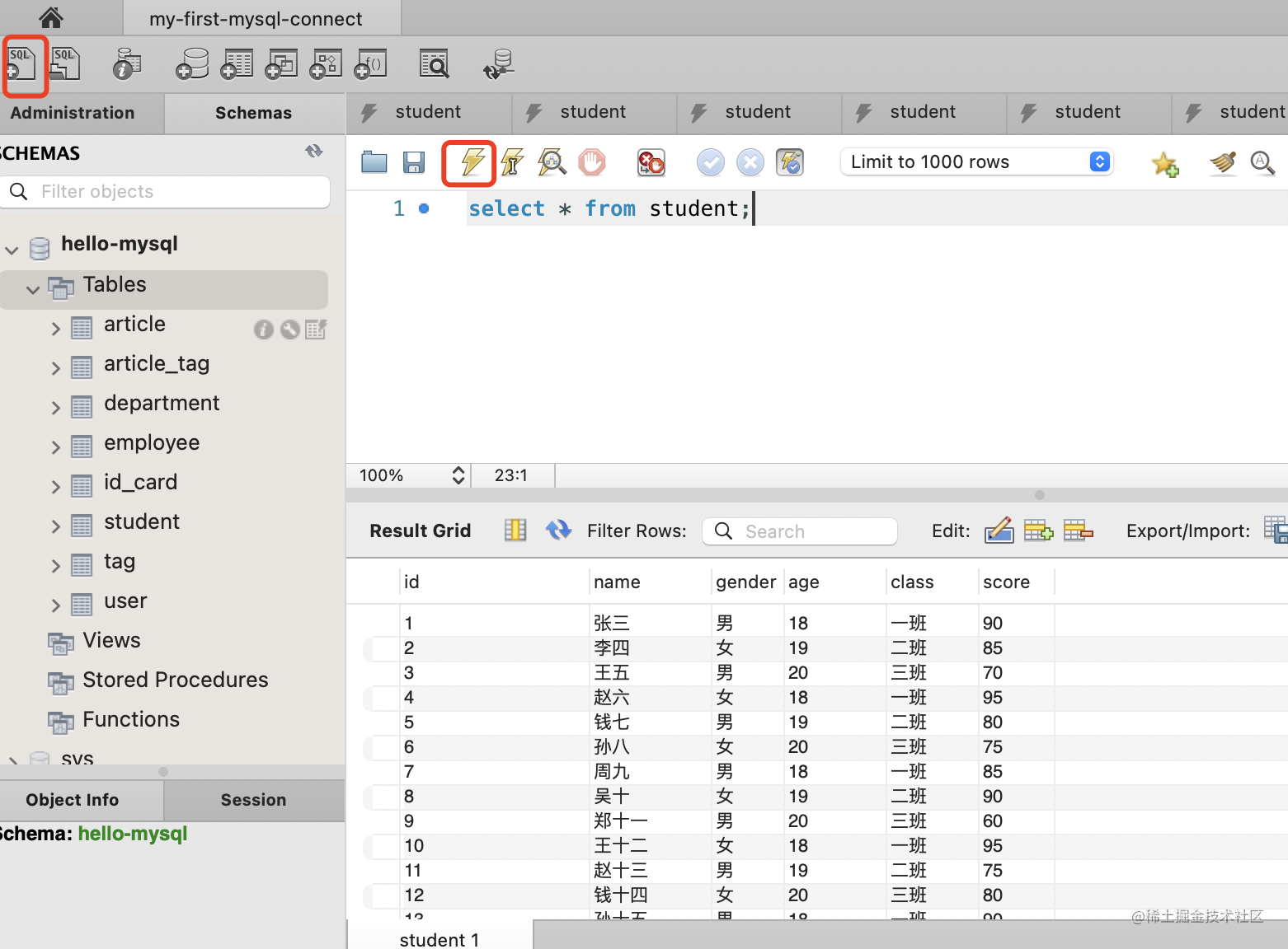先看下现在 student 表的数据: