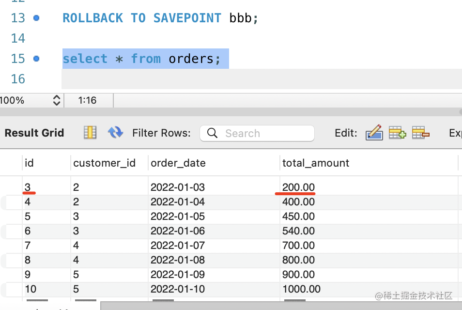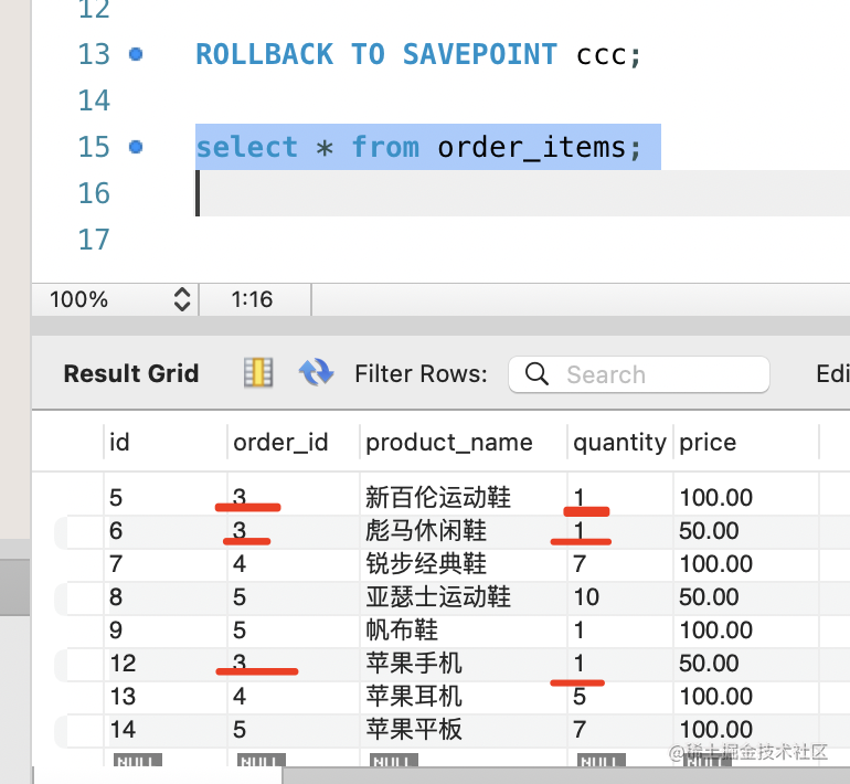 SAVEPOINT ccc;比如我设置了 3 个保存点。