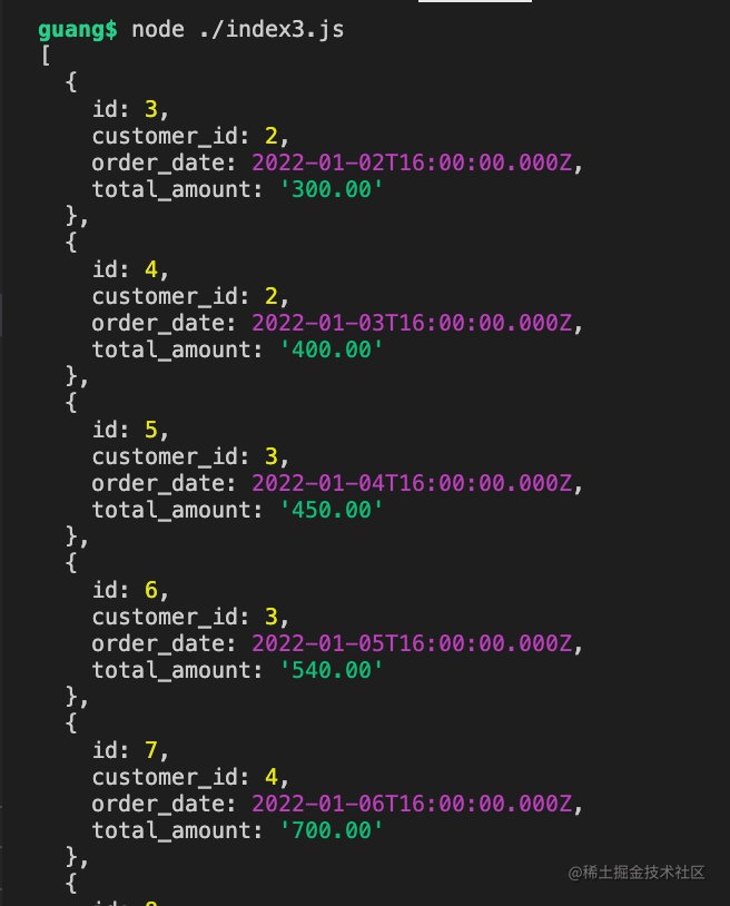 const [results, fields] = await connection.query('SELECT * FROM customers');