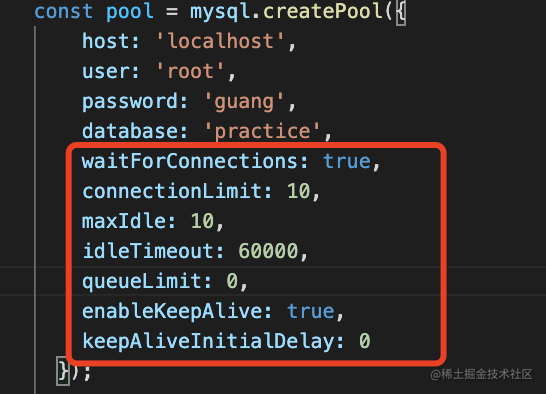 connectionLimit 是指定最多有多少个连接,比如 10 个,那就是只能同时用 10个,再多需要排队等。