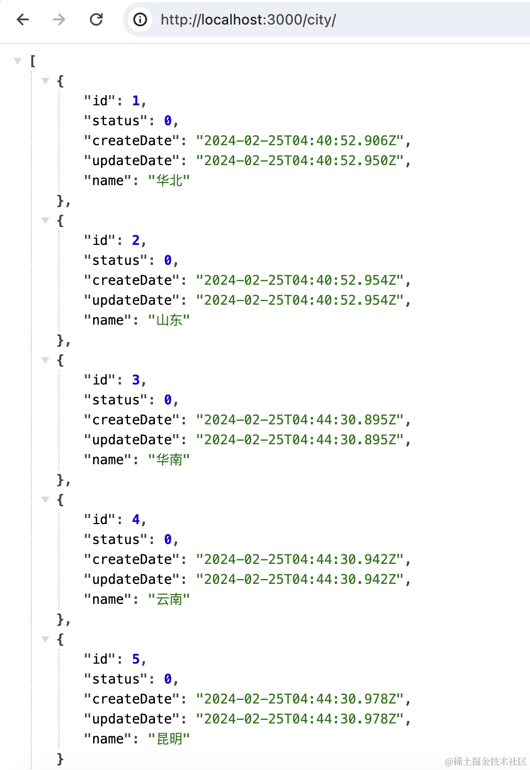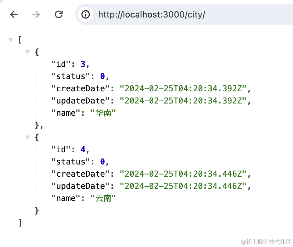 在 CityService 的 findAll 方法里插入数据,然后再查出来。