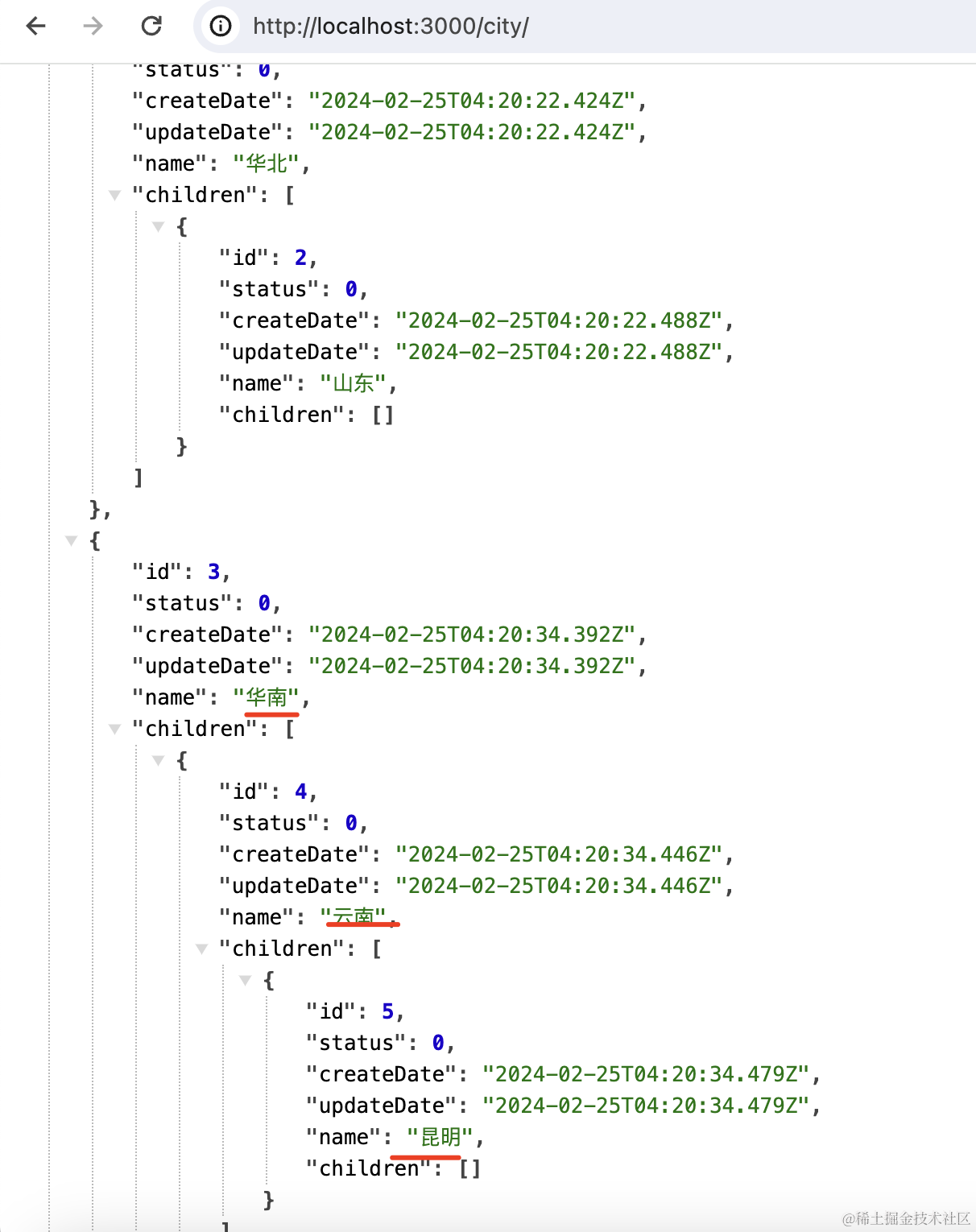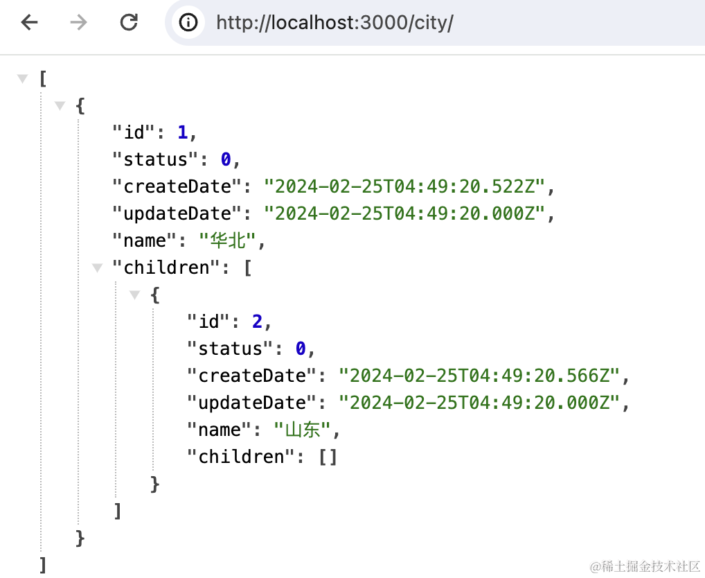 可以看到数据插入成功了,并且返回了树形结构的结果。