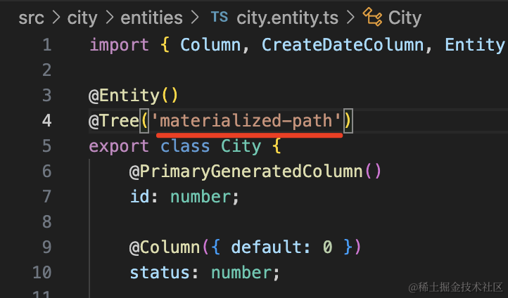 然后改下 city.entity.ts