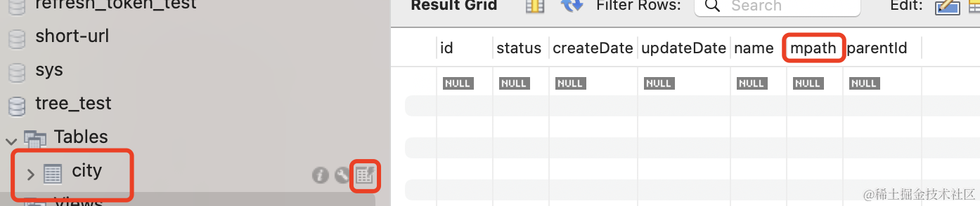 只是这个表多了一个 mpath 字段。
