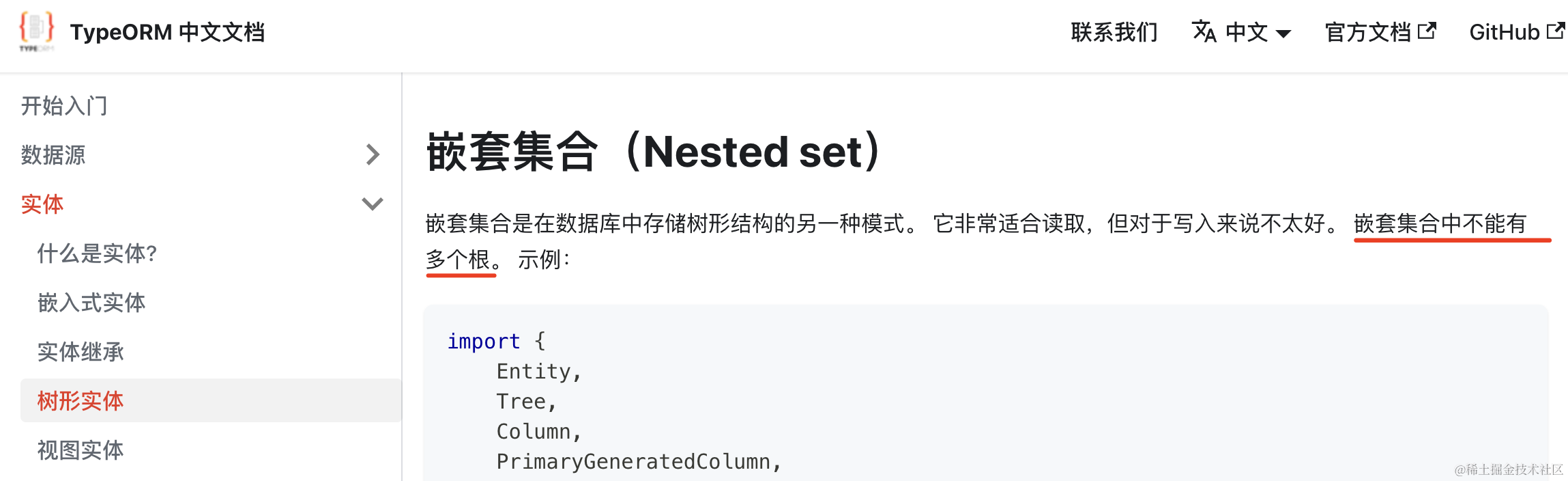 并且这个 entity 要用 @Tree 声明。