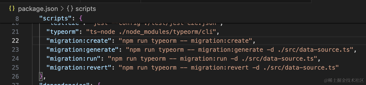 "migration:revert": "npm run typeorm -- migration:revert -d ./src/data-source.ts"这样用起来就简单多了: