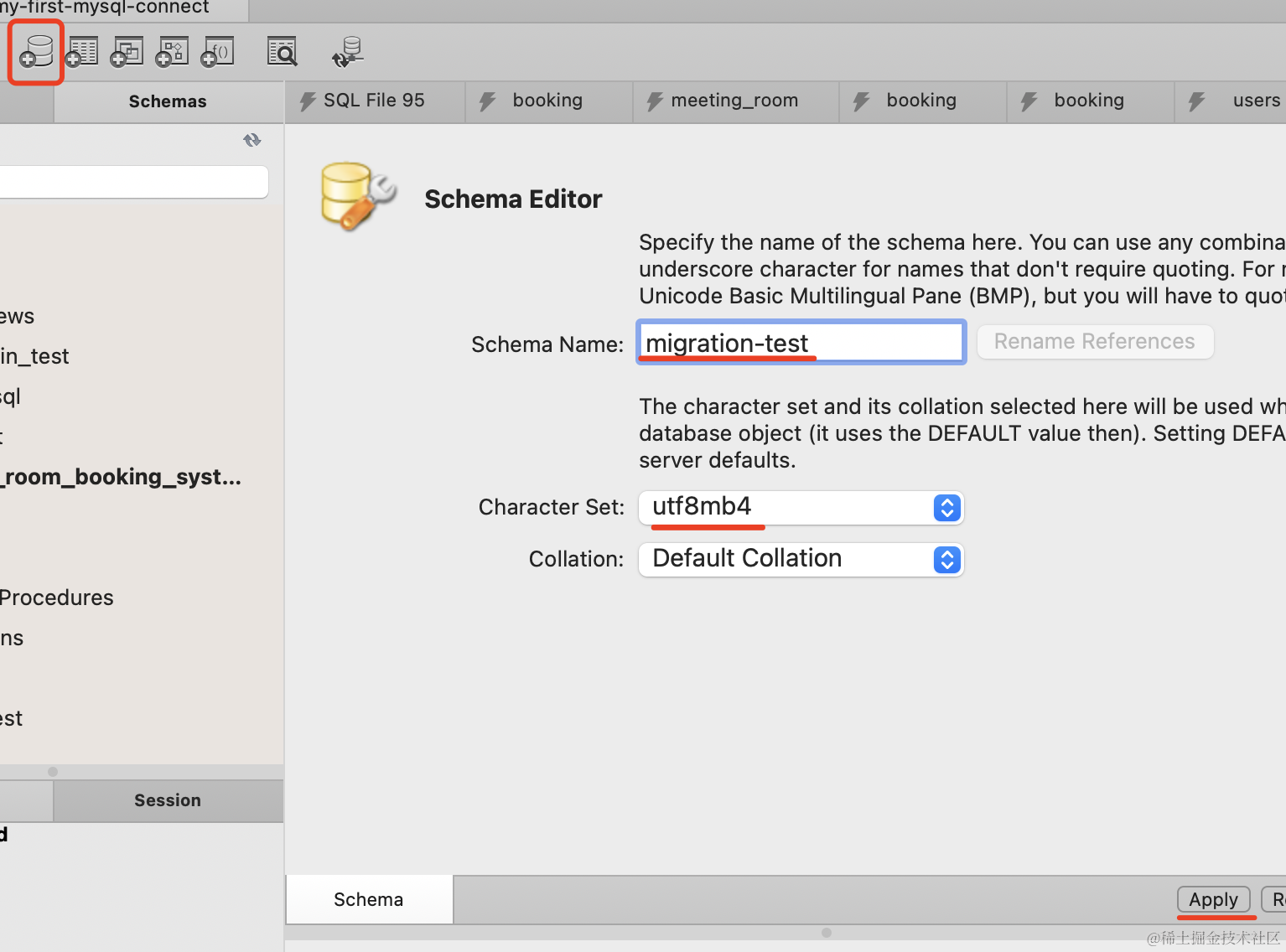 CREATE SCHEMA `migration-test` DEFAULT CHARACTER SET utf8mb4 ;跑一下:
