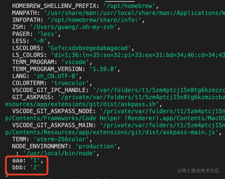 可以看到 aaa 是 .aaa.env 里的,bbb 是 .env 里的。