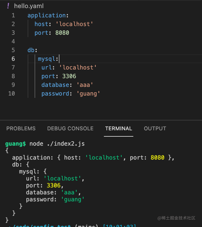 console.log(yaml.load(config));跑一下: