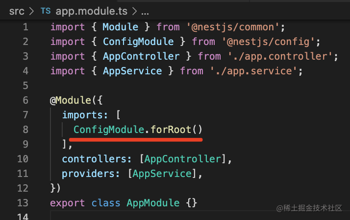 npm install --save @nestjs/config这个包同样是动态模块的方式,他有 forRoot 和 forFeature 两个方法。