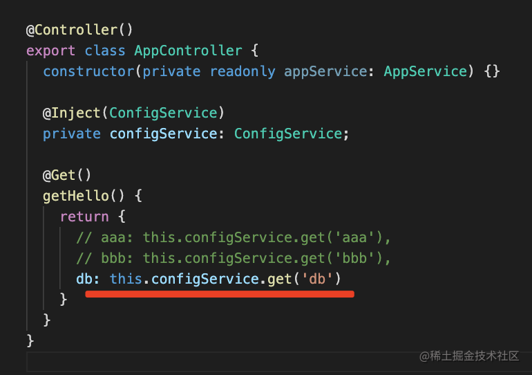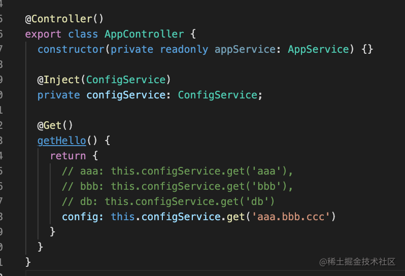 然后在 AppController 里注入 ConfigService 来读取配置: