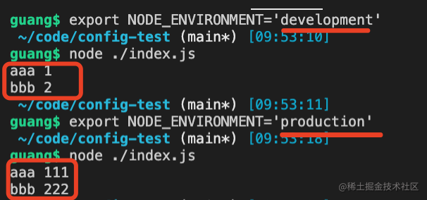 bbb=222我们可以通过 NODE_ENVIRONMENT 环境变量来切换: