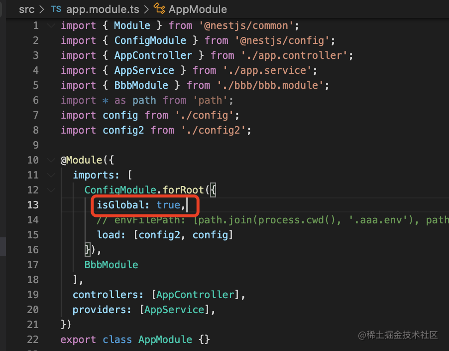 这时候把 ConfigModule.forRoot 注册为全局模块就好了: