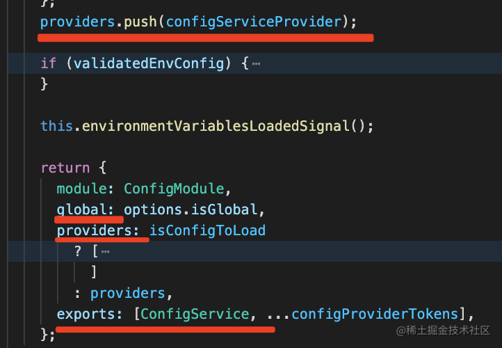 它就是根据 options 读取 env 配置,然后用 useFactory 创建 ConfigService 的 provider: