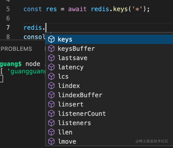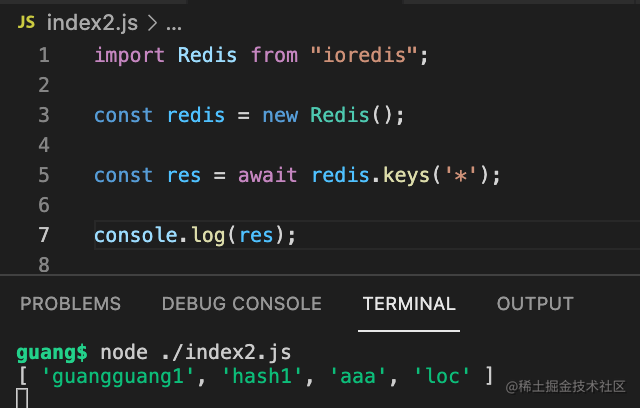 await client.disconnect();这里执行 keys 命令,获取所有的 key。