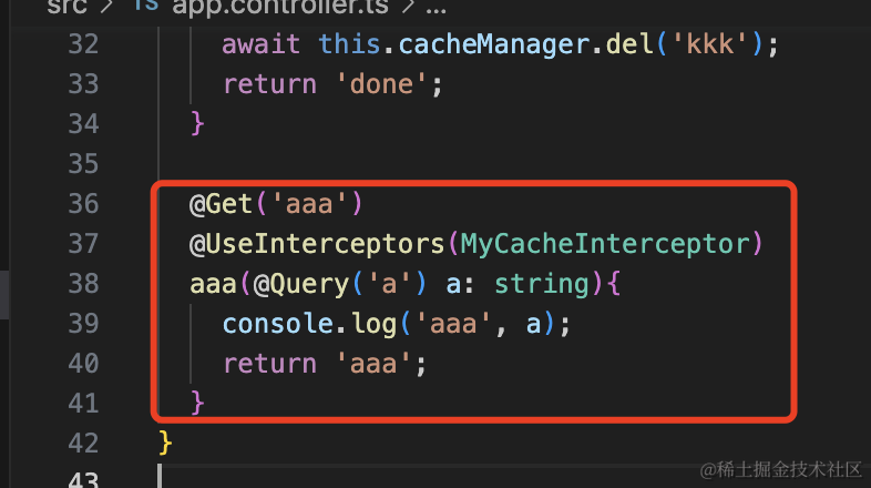 具体的逻辑比较容易看懂,就是如果查到了 key,就直接返回 value,这里要返回 rxjs 的 Observable 对象,所以用 of 包一下。