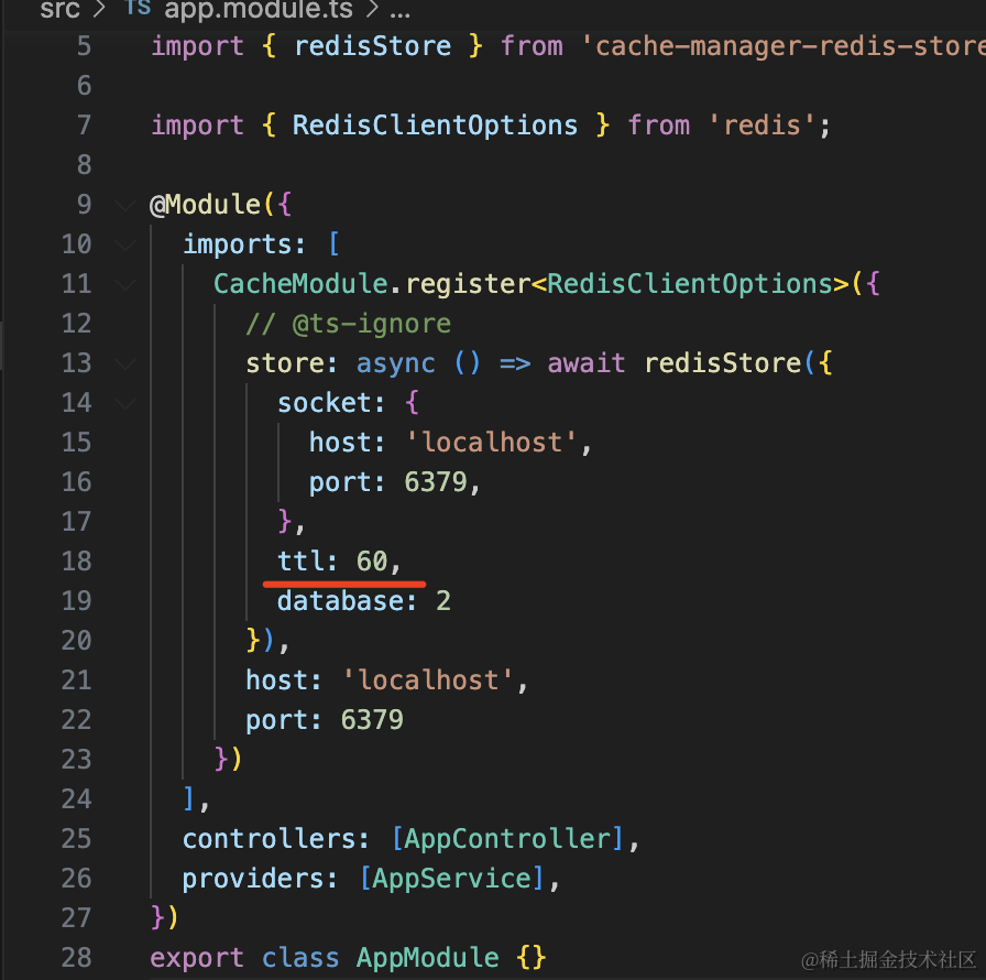 npm install @nestjs/cache-manager cache-manager在 AppModule 注册下: