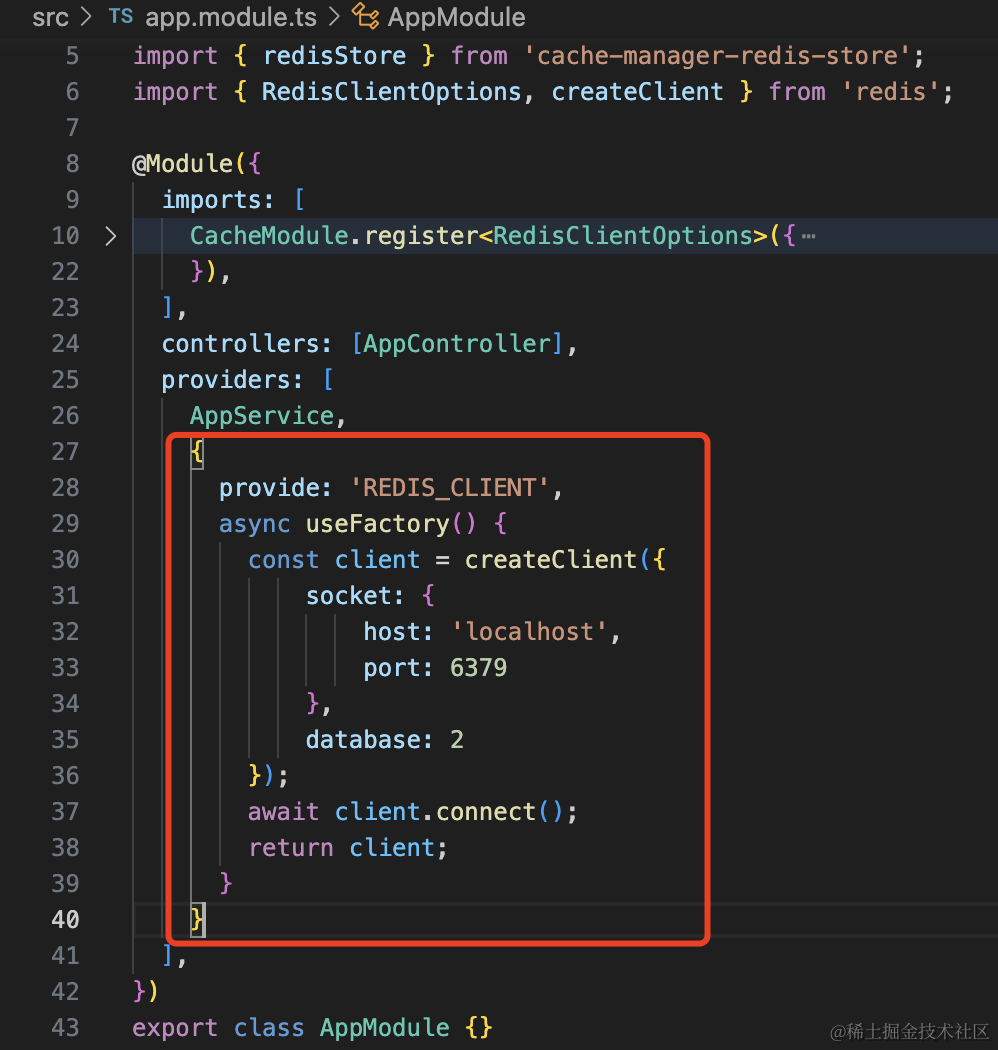 npm install redis 然后在 AppModule 添加一个自定义的 provider: