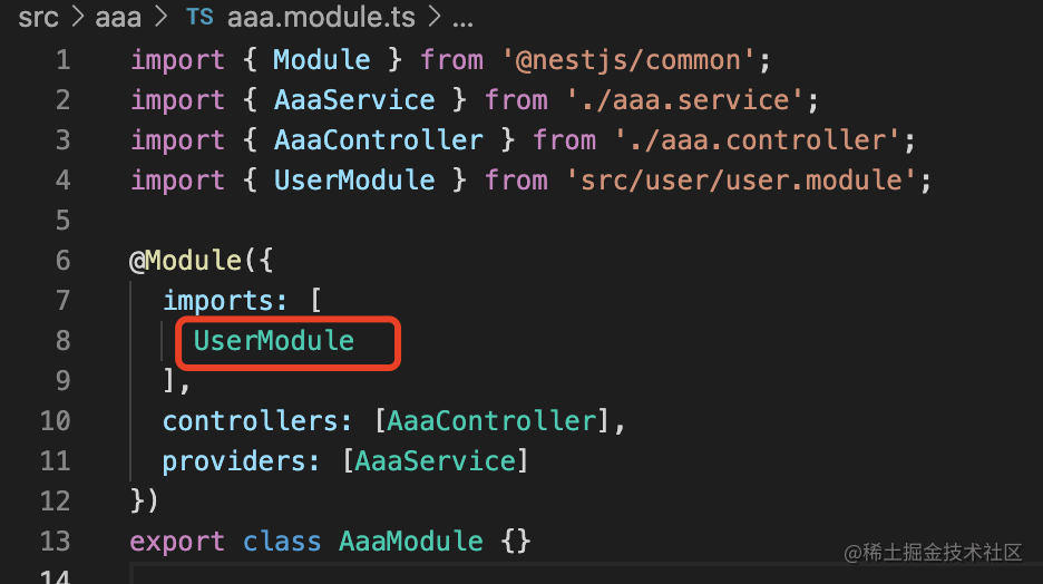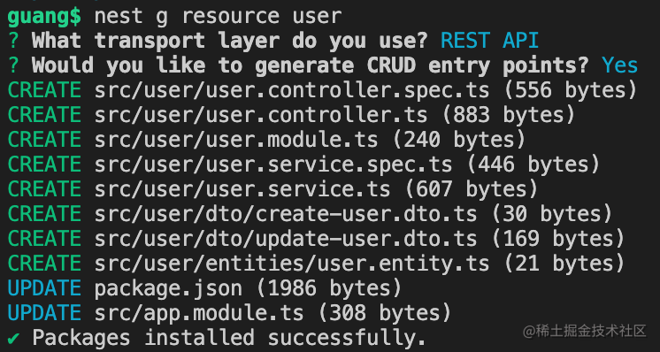 export class AppModule {}然后添加创建 user 模块: