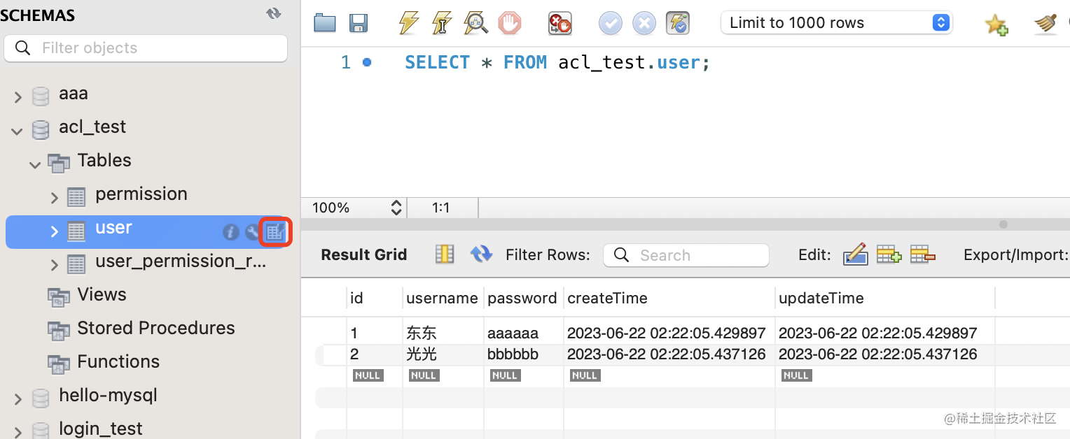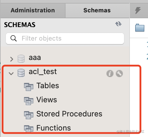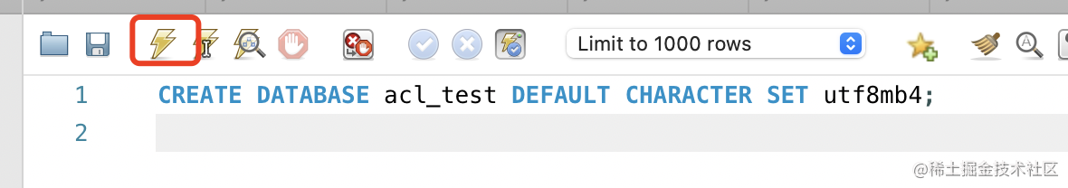 CREATE DATABASE acl_test DEFAULT CHARACTER SET utf8mb4;刷新可以看到这个 database: