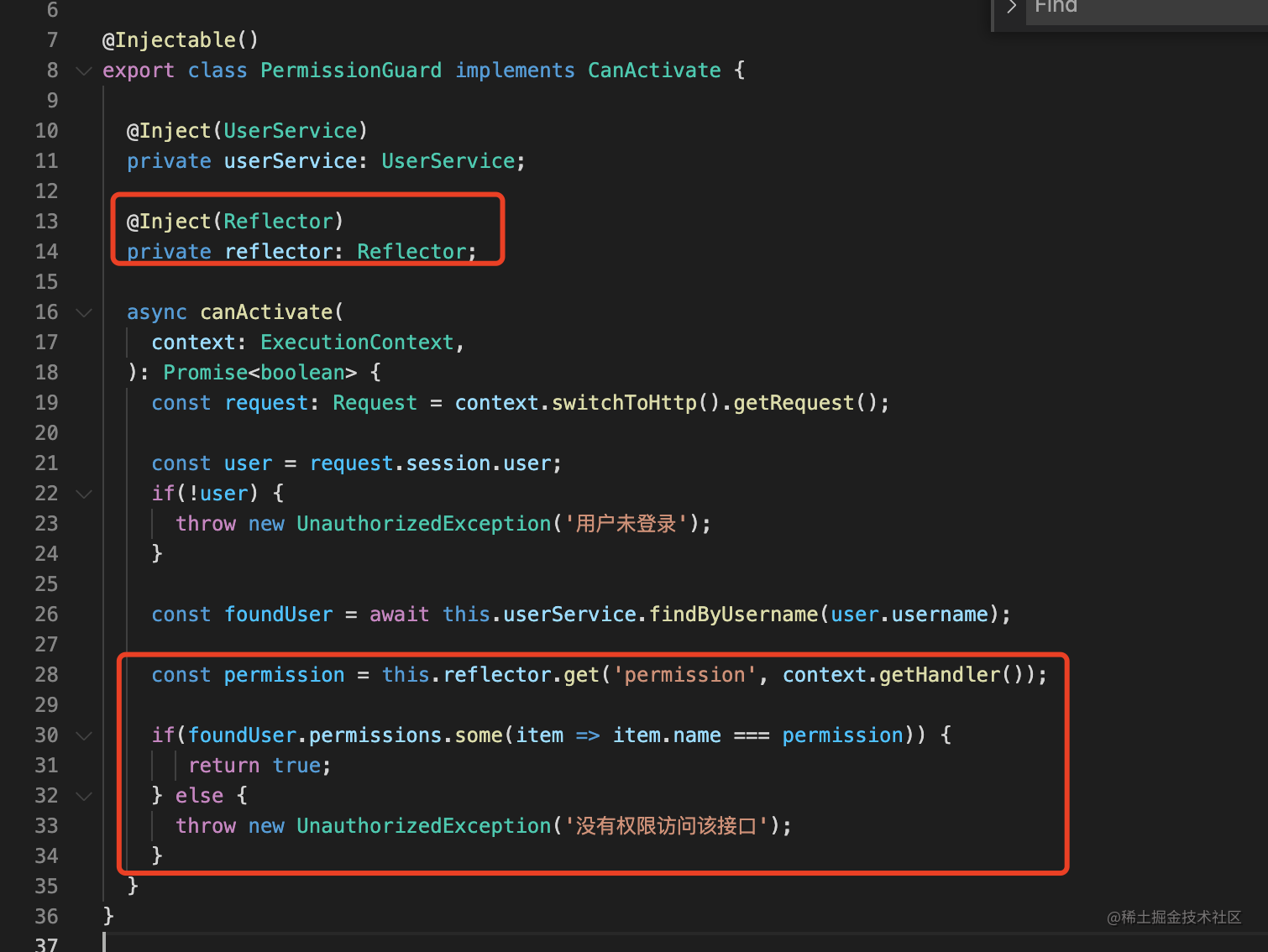 然后在 PermissionGuard 里通过 reflector 取出来:
