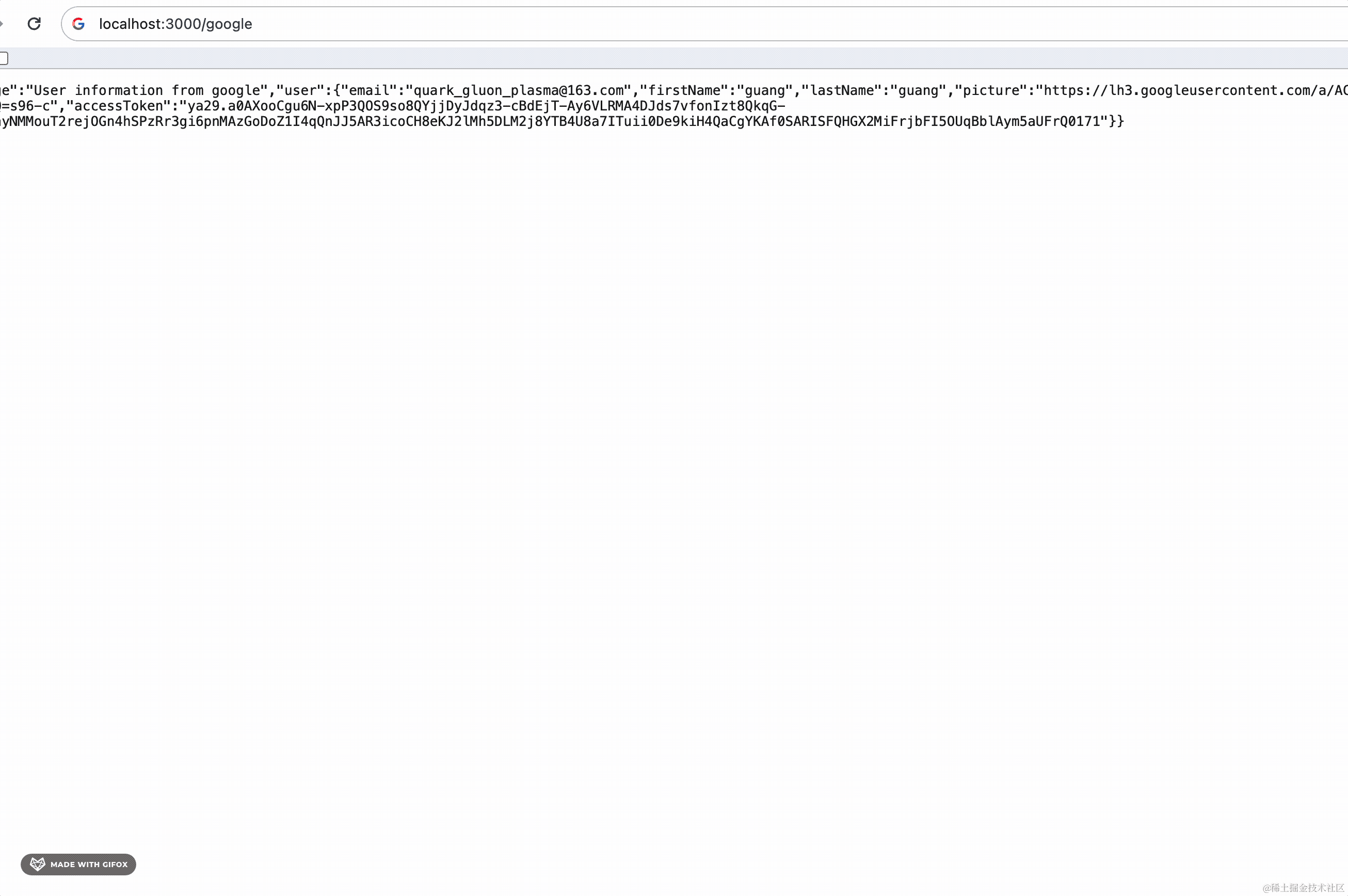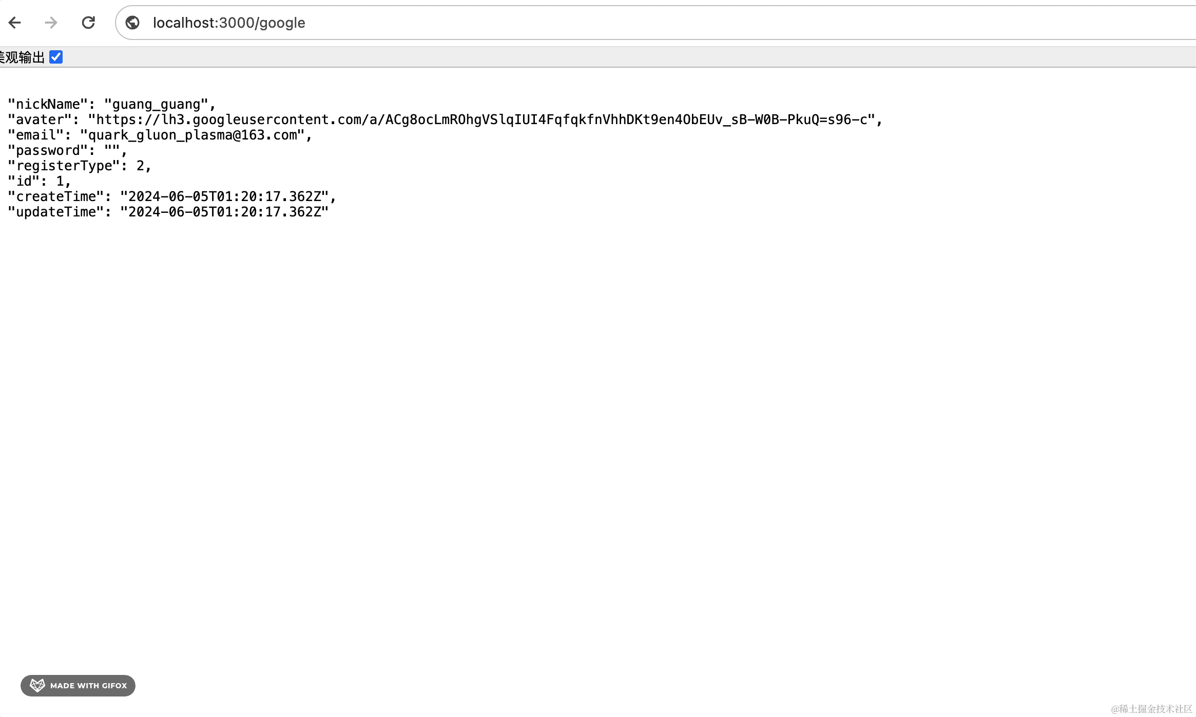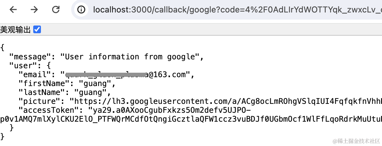 npm run start:dev可以看到,google 的用户信息拿到了: