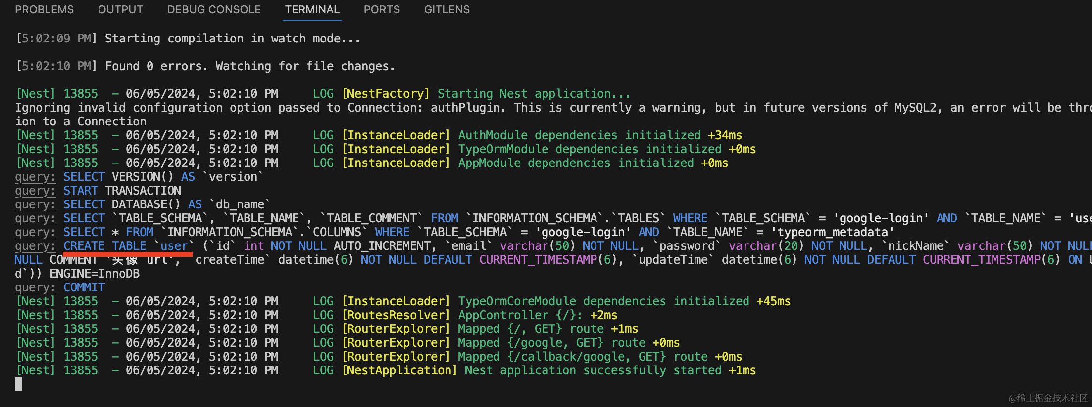 npm run start:dev这部分和我们单独跑 typeorm 没啥区别: