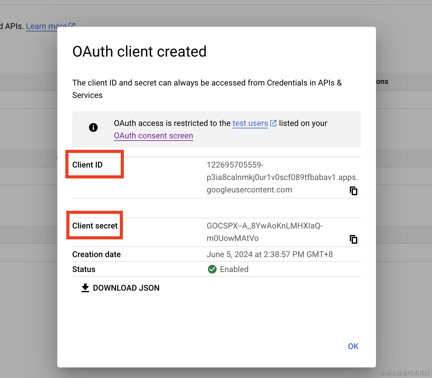 这样 client id 和 client secret 就生成好了: