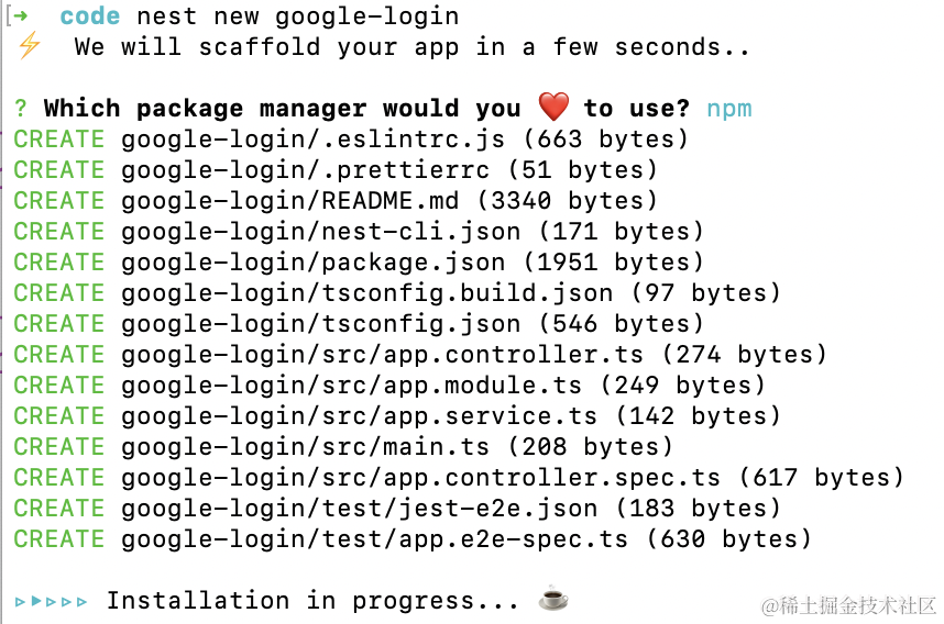 nest new google-login进入项目,安装 passport 的包: