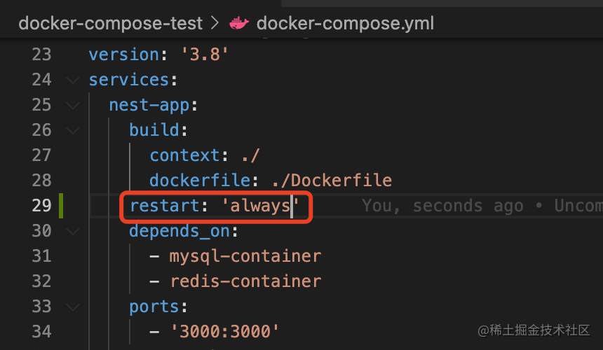 Docker Compose 是用于同时跑多个 Docker 容器的,它自然也支持 restart 的配置: