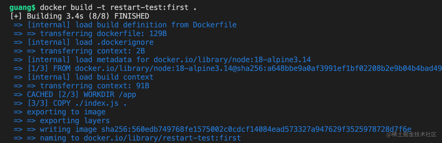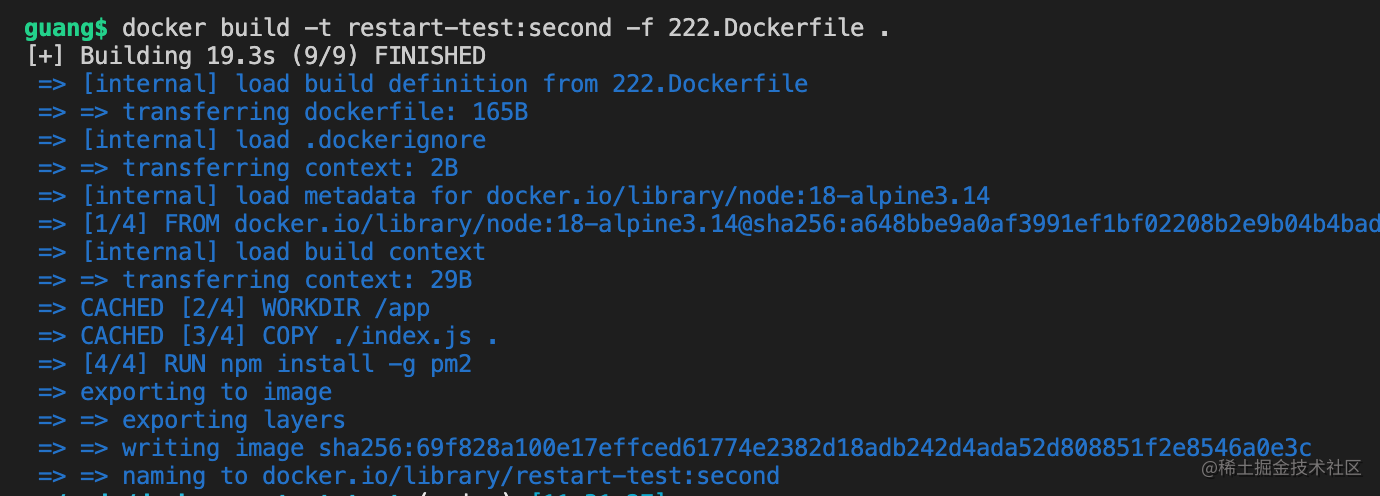 docker build -t restart-test:second -f 222.Dockerfile .然后跑一下:
