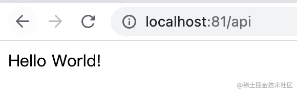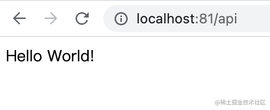 docker cp ~/nginx-html/conf.d/default.conf nginx1:/etc/nginx/conf.d/default.conf然后你访问 http://localhost:81/api 就可以看到 nest 服务返回的响应了: