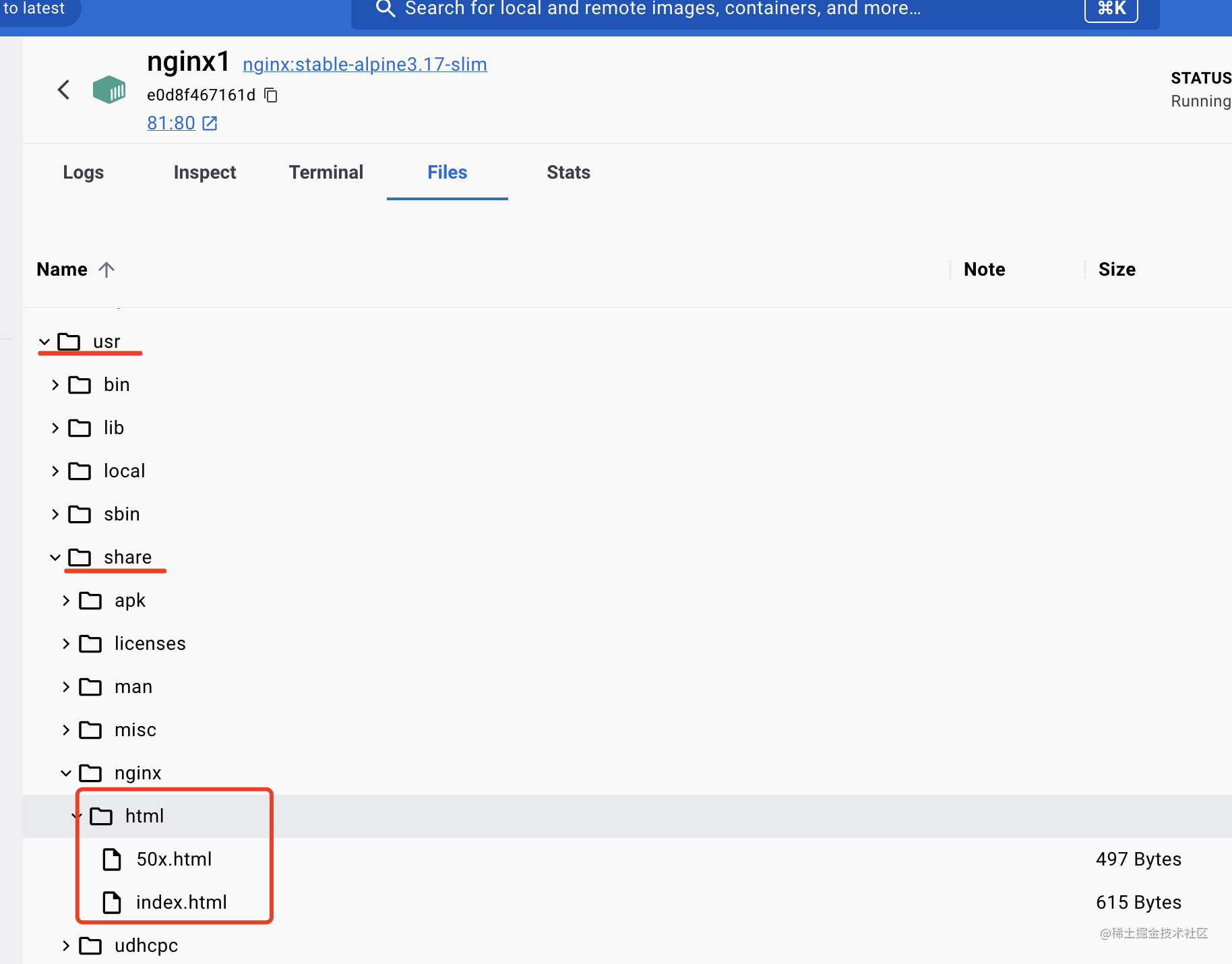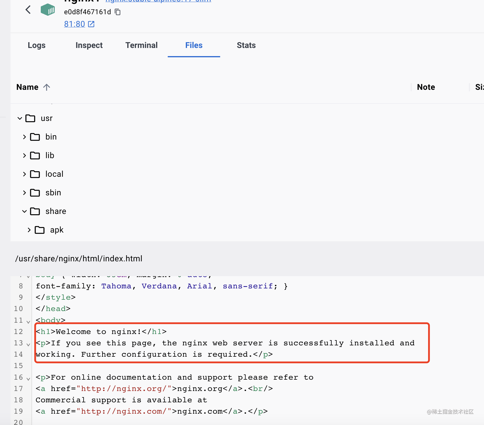 里面的 /usr/share/nginx/html/ 目录下面就是所有的静态文件。