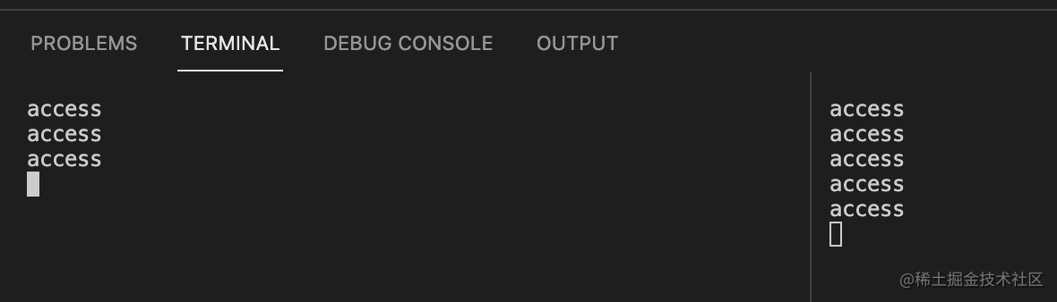 docker cp ~/nginx-html/conf.d/default.conf nginx1:/etc/nginx/conf.d/default.conf按 command + k,把 nest 服务的控制台日志清空下: