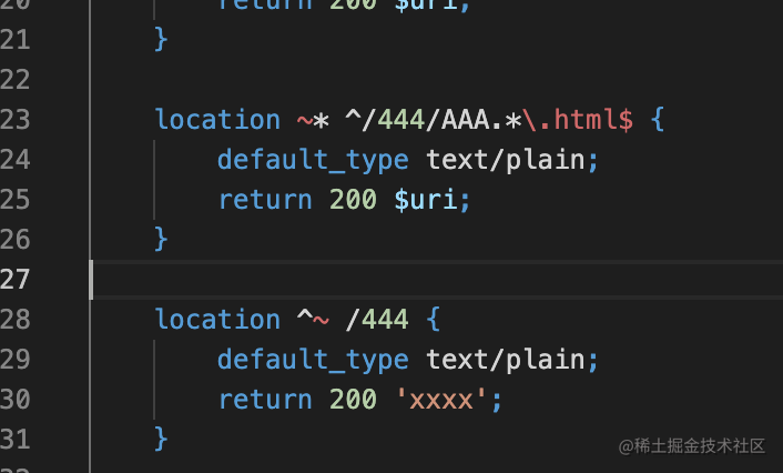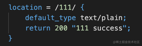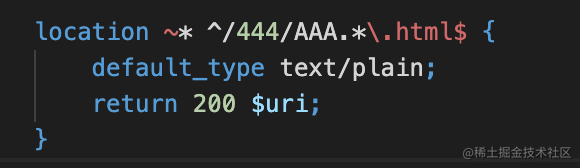 location 和路径之间加了个 =,代表精准匹配,也就是只有完全相同的 url 才会匹配这个路由。