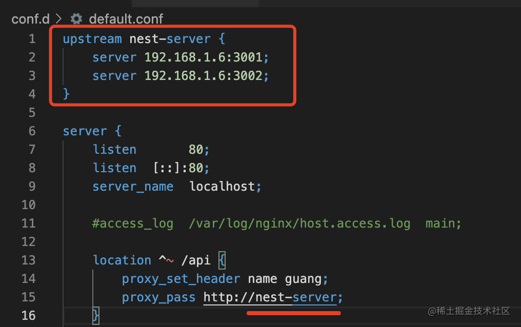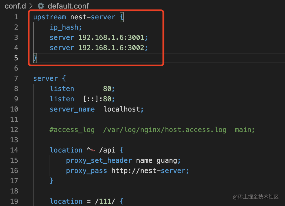 问题来了,现在有一个 nginx 服务器,两个 nest 服务器了,nginx 该如何应对呢?